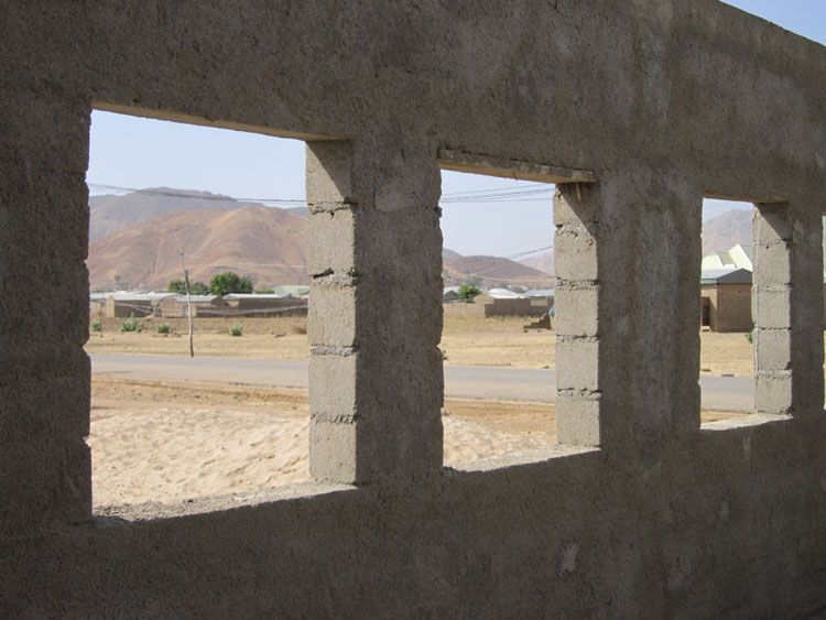 Ausblick aus dem Alphabetisierungssaal auf die Berge um Maroua.