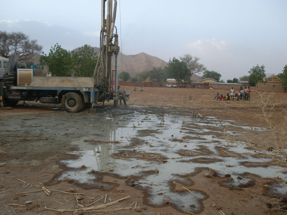 Noch vor Ostern wurde der Auftrag erteilt. Doch dann mussten wir uns in Geduld üben, obwohl der Partner, der den Brunnen ausführen sollte, versprochen hatte, die Arbeiten gleich zu beginnen. Sanda, der stellvertretende Vorsitzende von Lumière-Cameroun, stand regelmäßig in Kontakt mit den Mitarbeitern unseres Partners. In den Bergen hatten sie beim Bohren von Brunnen mehrere Fehlversuche und mussten die Bohrung wiederholen. Dann hatte der Kompressor eine Panne. Danach musste ein Ersatzteil beschafft werden, was sich als schwierig herausstellte. Wir haben keine Veranlassung den Aussagen unseres Partners zu misstrauen. Wir haben schon öfter mit ihm gearbeitet und er war sehr zuverlässig. Auch wissen wir aus eigener Erfahrung, dass Wartung und Ersatzteilbeschaffung, vor allem von Spezialgeräten, fast immer mit Schwierigkeiten verbunden sind.