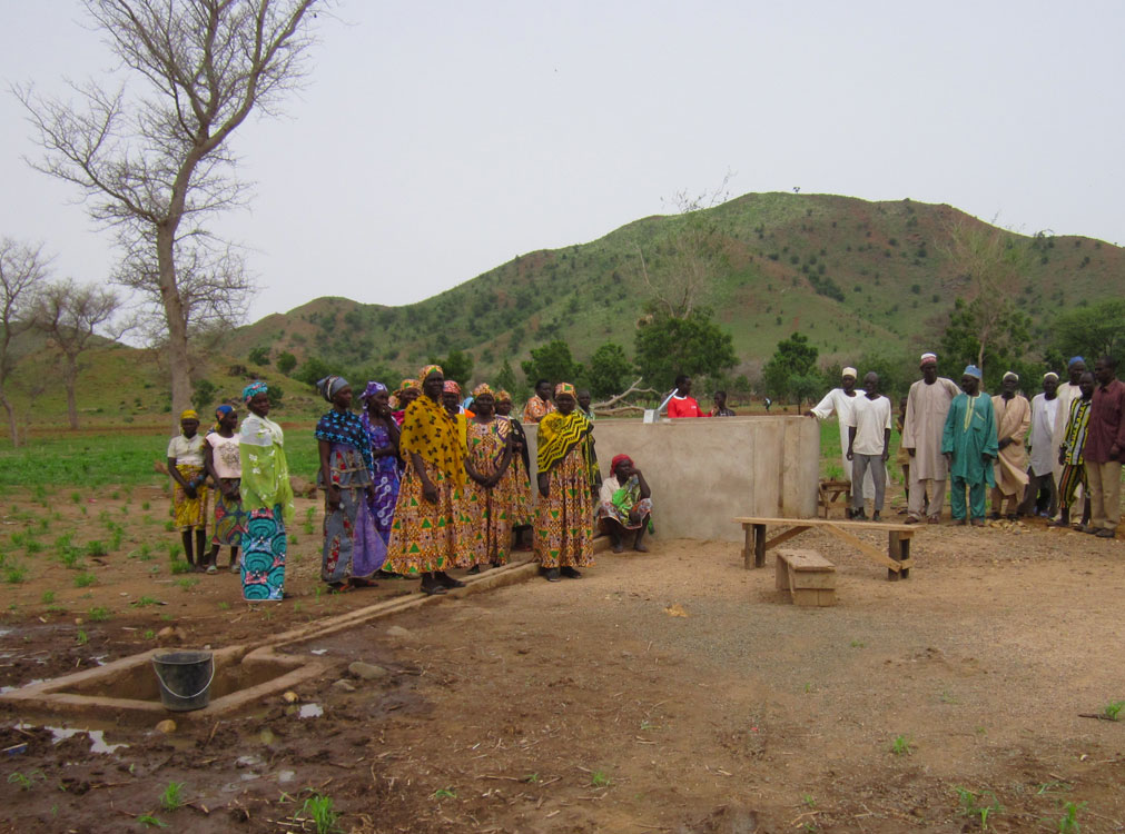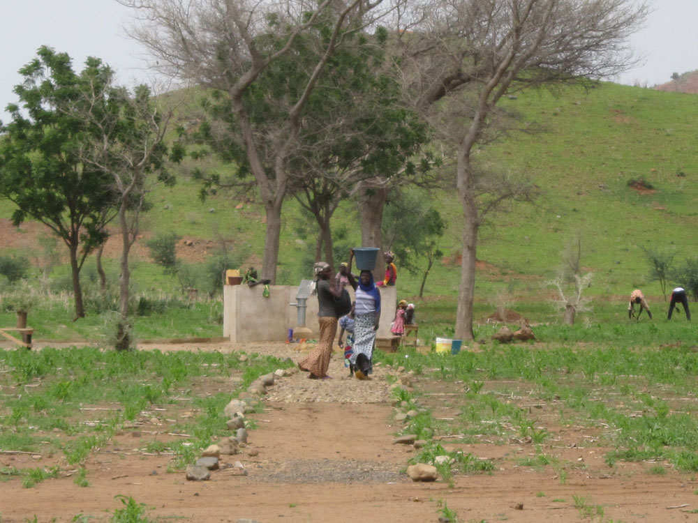 In der Zwischenzeit haben viele Frauen und Kinder am neuen Brunnen Wasser gepumpt.