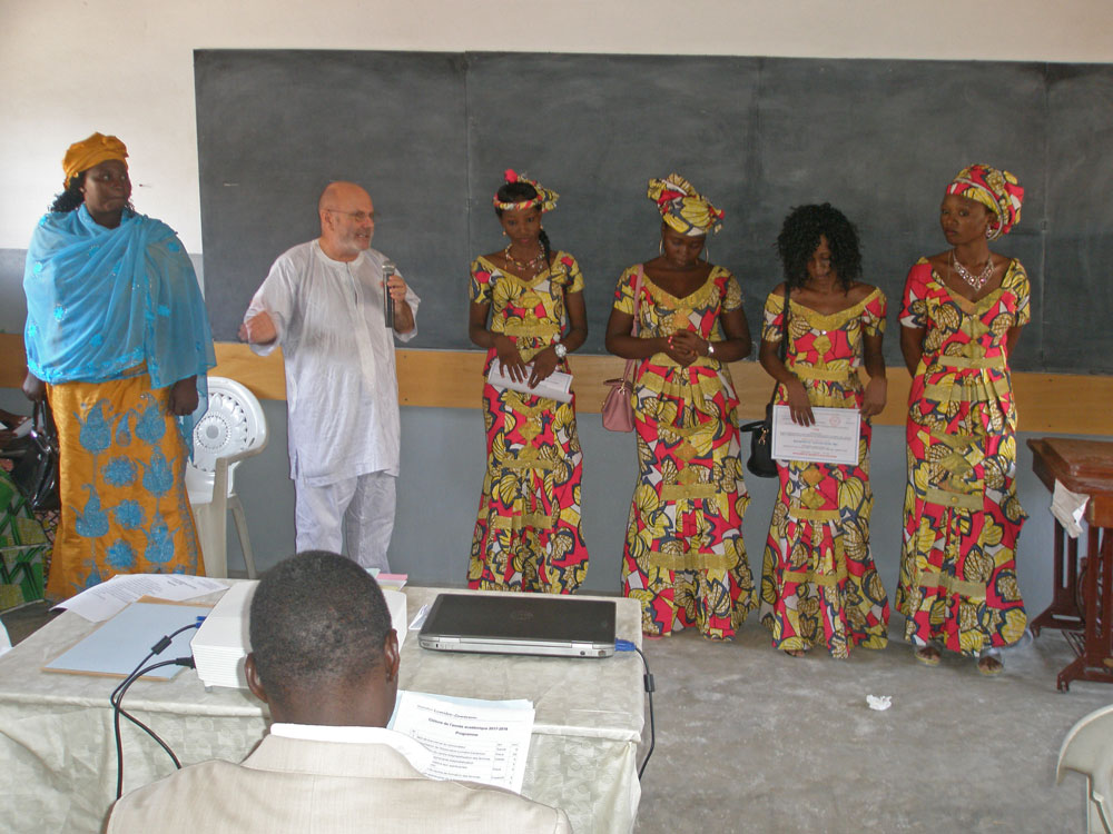 Die Gruppen in den Dörfern beenden das Schuljahr bereits Ende Mai, denn die Arbeit auf den Feldern ruft. Zur Abschlussfeier werden Familie und Gäste eingeladen. Der Dorfchef und die geistlichen Autoritäten ehren die Aktivitäten der Frauen durch ihre Anwesenheit. Für Lumière-Cameroun ist es immer eine Freude teilzunehmen, zeigt sie doch die Entwicklung, die die Gruppe innerhalb eines Jahres gemacht hat.