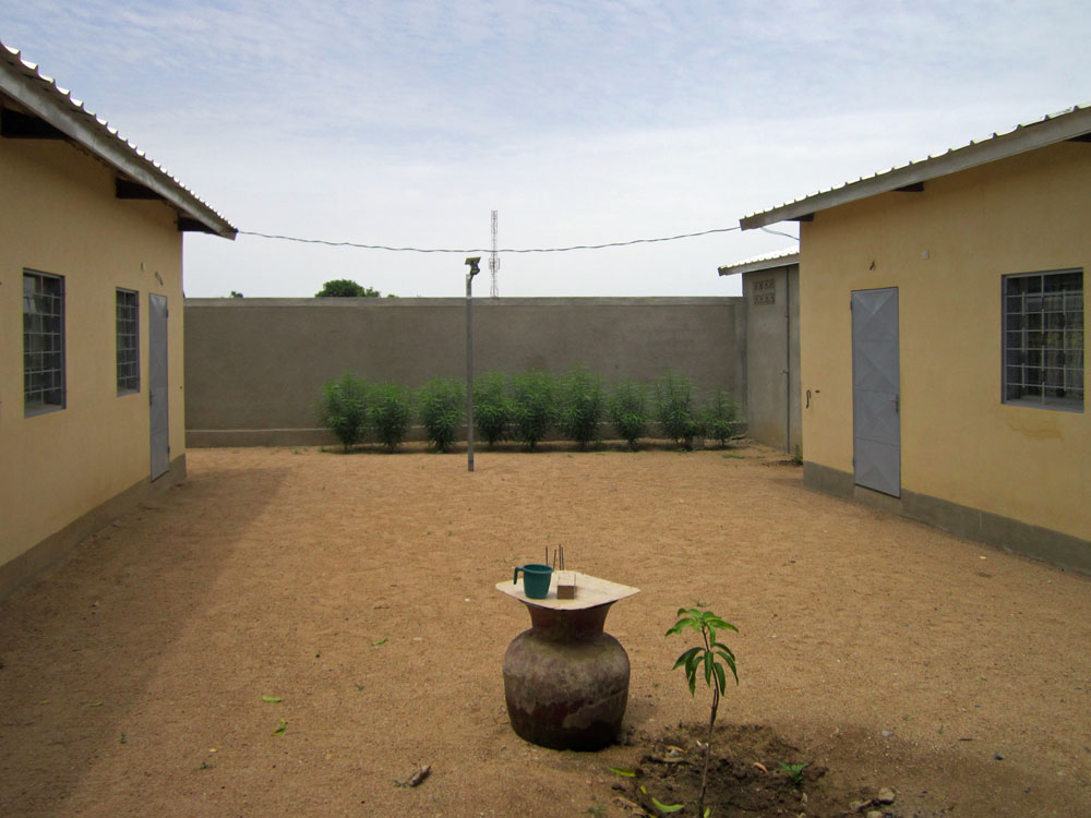 Der Blick in die andere Richtung. Der Innenhof wird langsam grün. Das