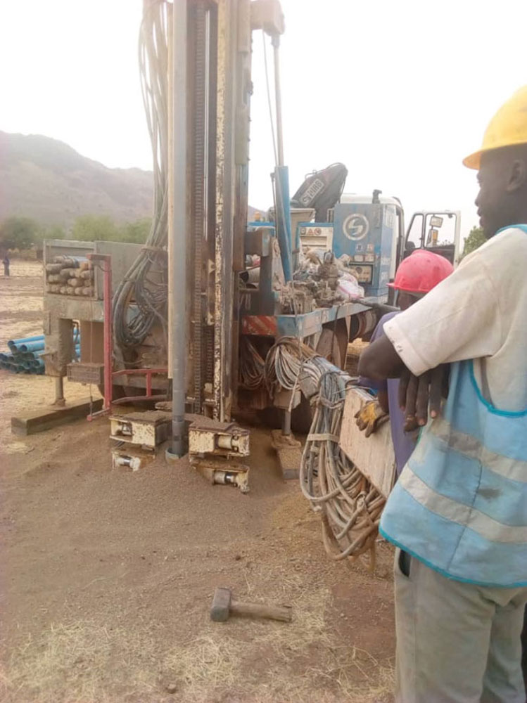 Das Bohrteam beginnt in den Bergen. Die erste Bohrung. Enttäuschung, kein Wasser. Die zweite Bohrung war auch ein Misserfolg. Das Bohrteam ist entmutigt und fährt nach Adija.