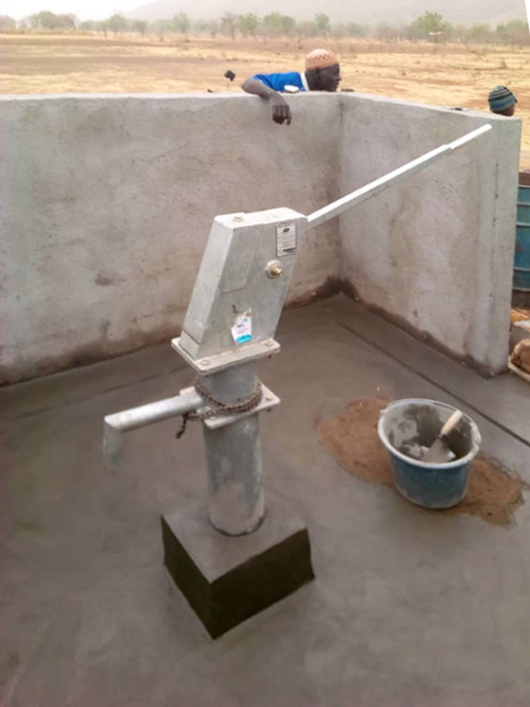 Hier ist dann gleich die erste Bohrung erfolgreich und das Wasser sprudelt. Danach wurde das „Brunnenzimmer“ gemauert und die Pumpe installiert. Nach insgesamt zwei Wochen war der Brunnen in Adija fertig und konnte der Bevölkerung übergeben werden.