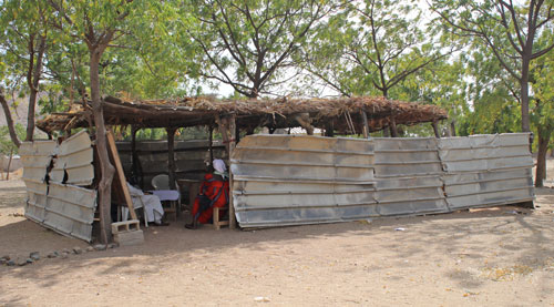 Das ist ein provisorisches Klassenzimmer der Grundschule in Yonkolé, das die