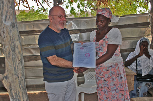 Die Vorsitzende der Frauengruppe in Yonkolé präsentiert stolz die Unterlagen