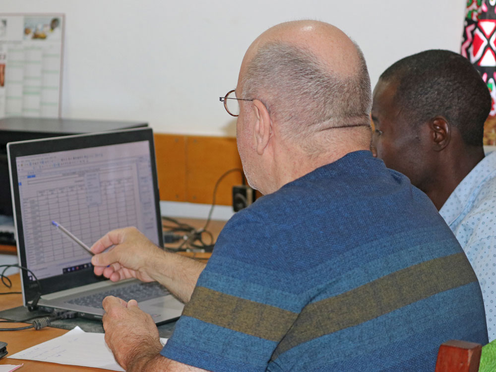 Eine meiner Aufgaben in diesem Jahr ist Abel als Sekretär auszubilden. Eigentlich ist er Schreiner. Seit einiger Zeit ist er Mitglied von Lumière-Cameroun und hat uns mit seinen handwerklichen Fähigkeiten ausgeholfen, wenn wir ihn gebraucht haben. Mit viel Engagement und Fleiß arbeitet er sich jetzt in diese für ihn neue Aufgabe hinein. Er ist Anfang November 2022 regelrecht ins kalte Wasser des Sekretariats gesprungen und hält sich seitdem tapfer über Wasser. Nun darf ich ihn in seine Aufgaben einweisen und ausbilden, so dass er gut und sicher schwimmen kann. Obwohl er noch recht jung ist, wird er voll als Mitglied des Teams akzeptiert und die anderen Mitglieder bescheinigen ihm, dass im Sekretariat ein neuer Geist herrscht.