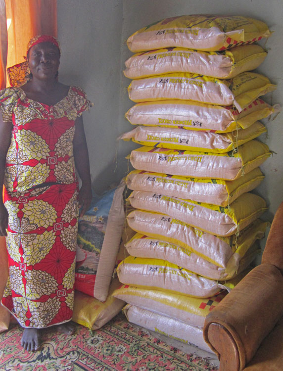 In Missingléo lagert die Vorsitzende den Reis in ihrem Wohnzimmer und die Hirse