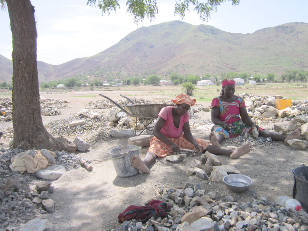 Seit diesem Jahr unterstützt Lumière-Cameroun eine Gruppe von Frauen in einem Vorort von Maroua, die Steine klopfen, eine harte Arbeit. Warum tun sie das?